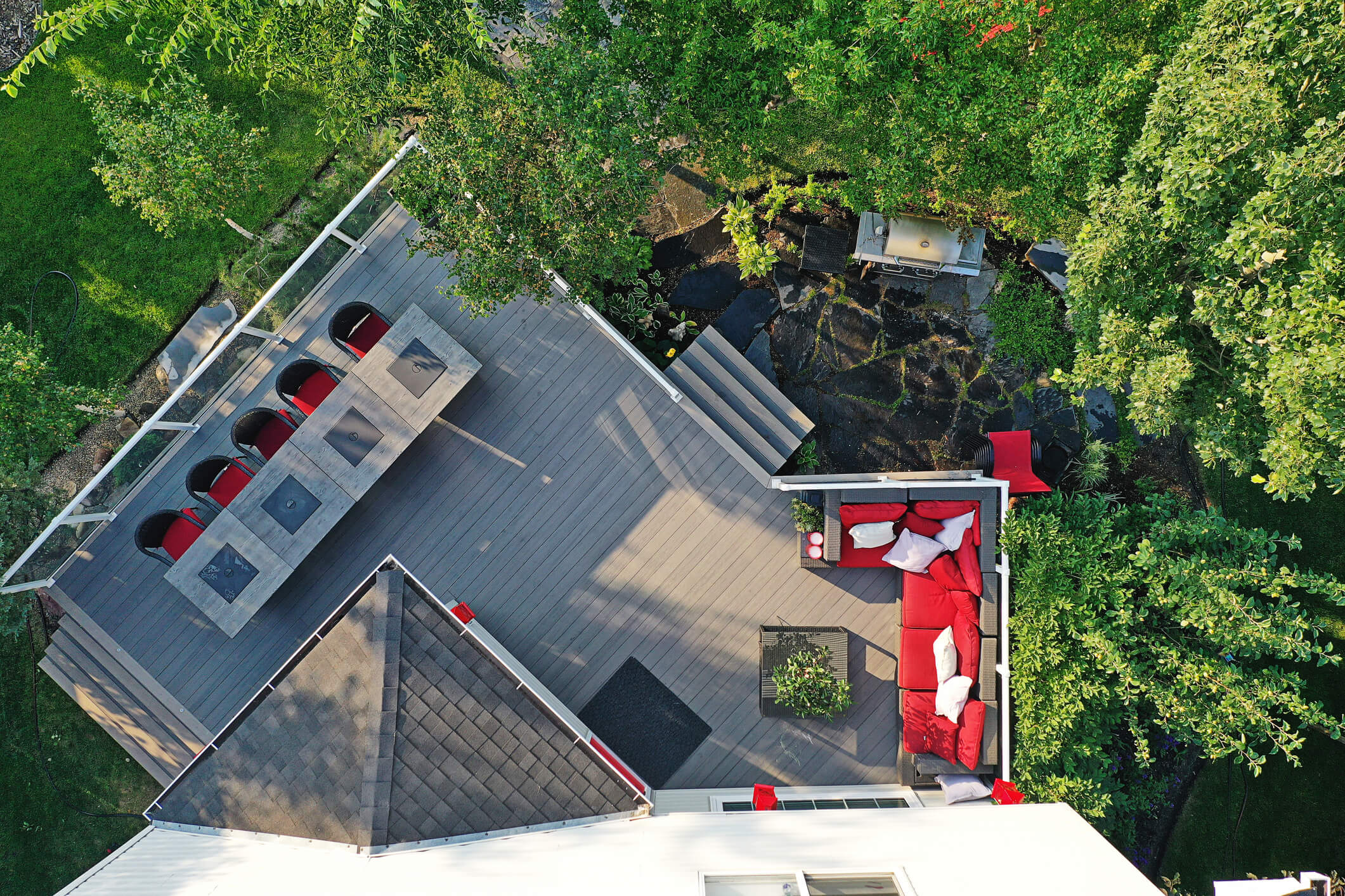 A contemporary deck wouldn’t be complete without the addition of some ‘mod cons’. For higher budget projects, a deck design could centre on a pool or hot tub, or it could feature a sleek fire pit surrounded by a sunken seating area. Contemporary luxuries may also include the addition of technology, such as built-in speakers, heaters or charging points for the ideal entertaining space.
