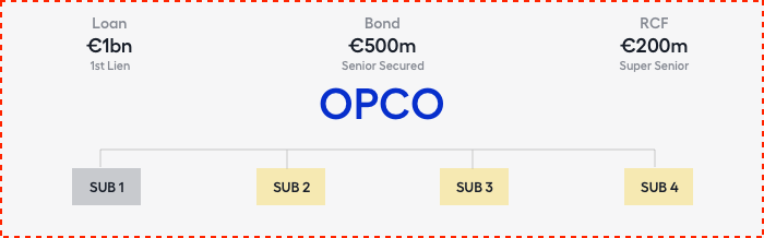 A restricted group also includes senior unsecured bonds. MidCo's ability to pay interest on its bonds is reliant on cash flow from OpCo. This means that any repayment revenues after the senior secured debt has been repaid benefit them on an unsecured basis.