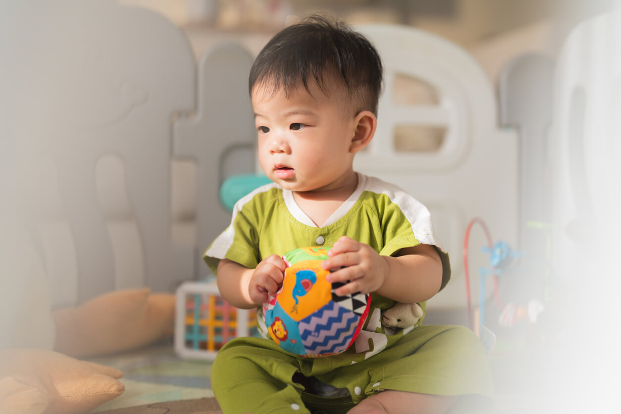 As babies progress towards 7 months, they learn to take turns making sounds, which is an essential step in understanding the basics of communication through language. They may start responding to their names, as research suggests that babies can recognise the sound pattern of their own names as early as 4 - 5 months. ¹⁵ ¹⁷ Around 12 months, children typically say their first words, such as "mama" or "dada", and begin connecting words to actions. ¹⁸ By 24 months, children have a larger oral vocabulary, which predicts better intellectual functioning later in life. They start forming simple sentences and understanding more complicated language structures. ¹⁹